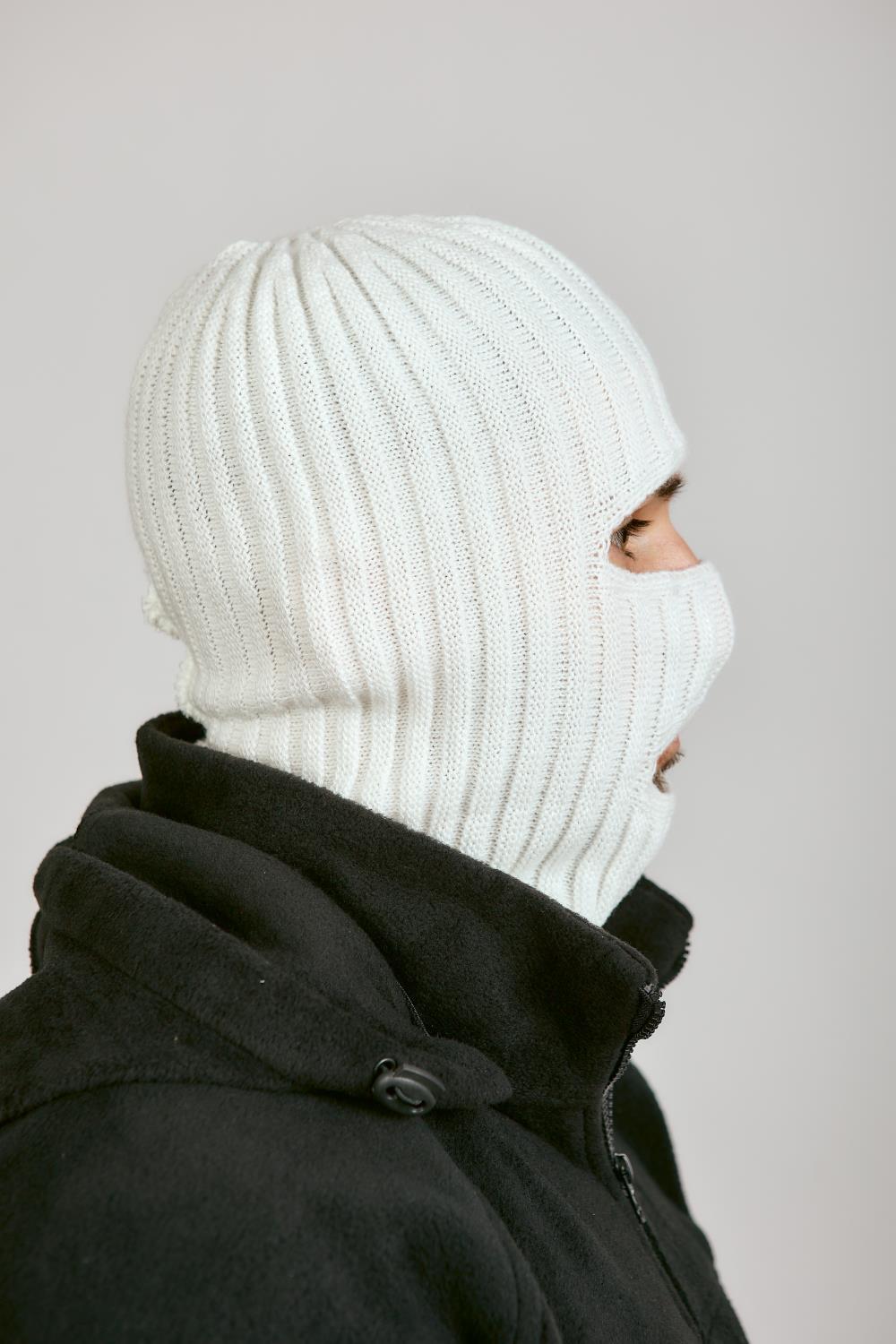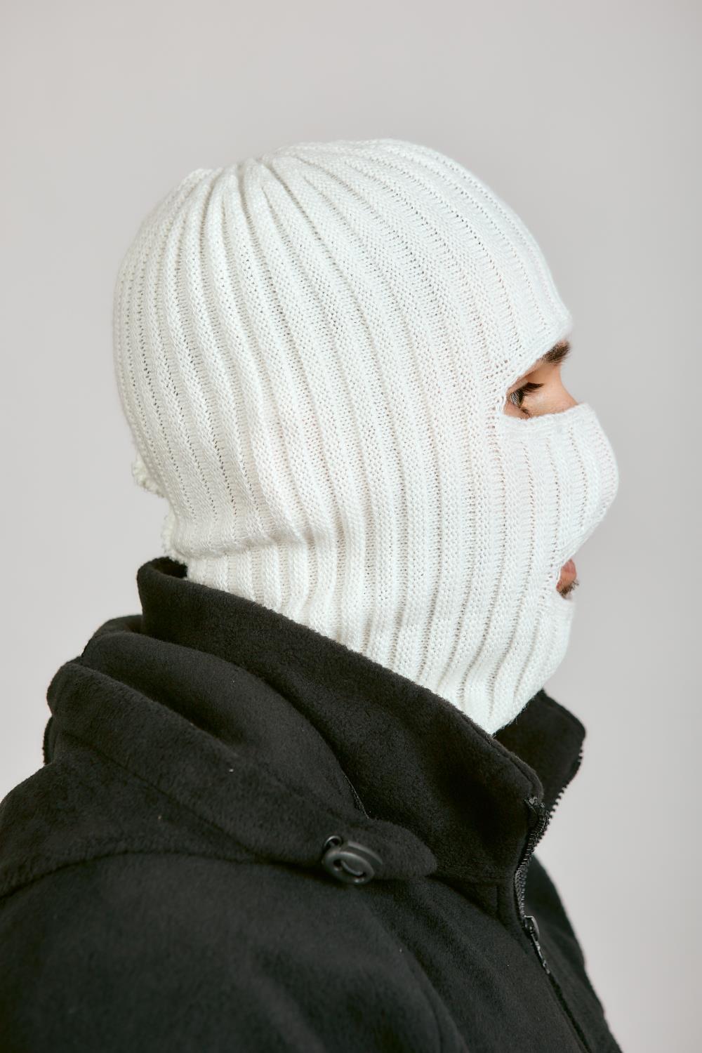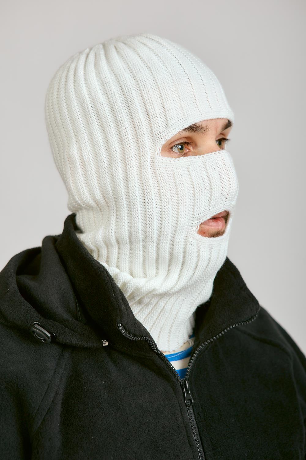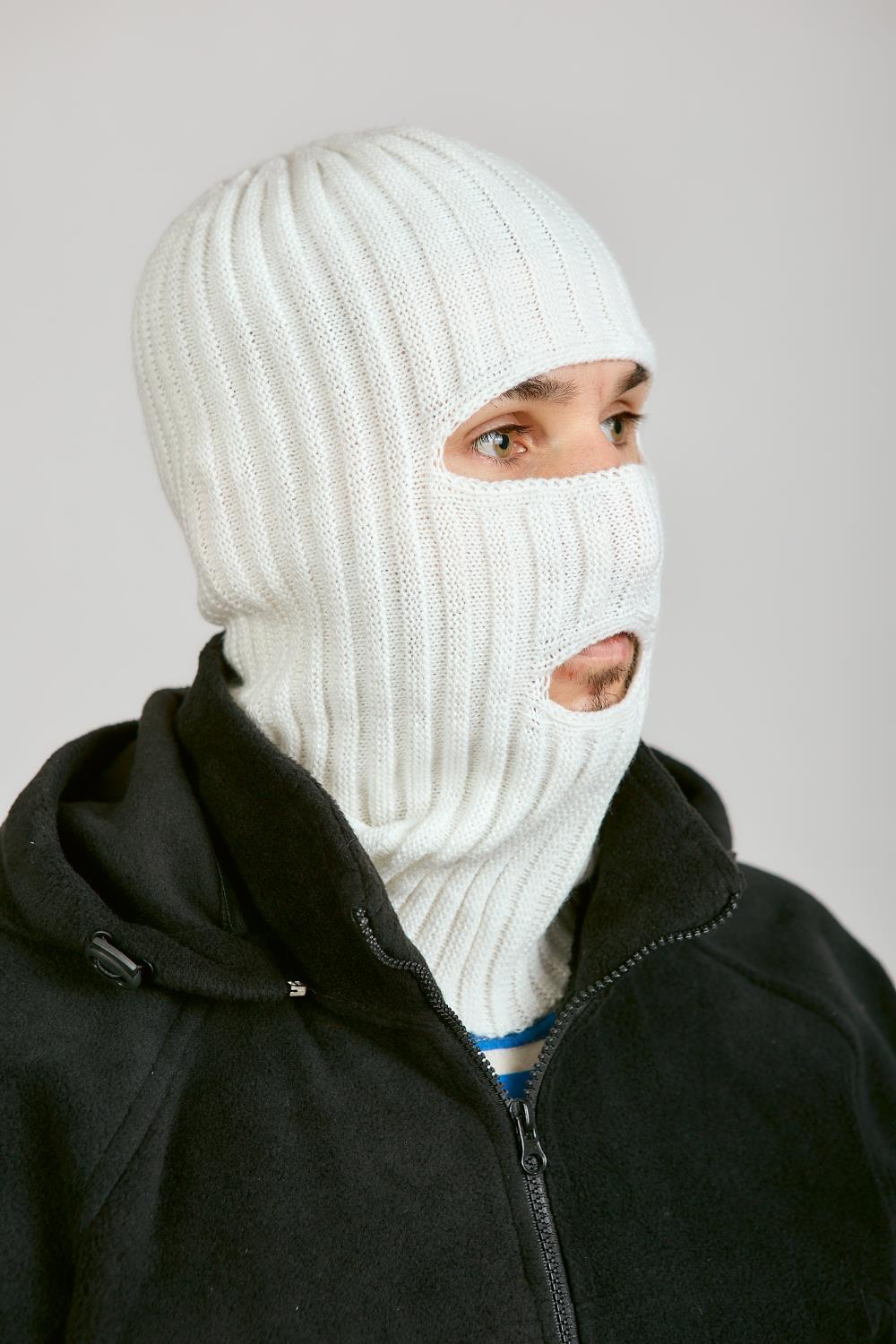 Маска 2 ОТВЕРСТИЯ, белый, пан, шерсть - интернет магазин Полигон