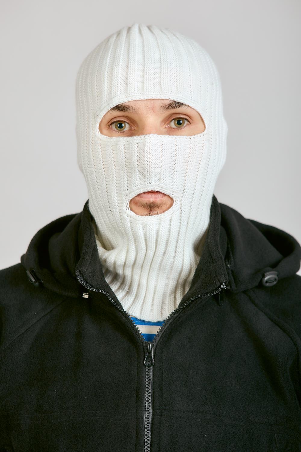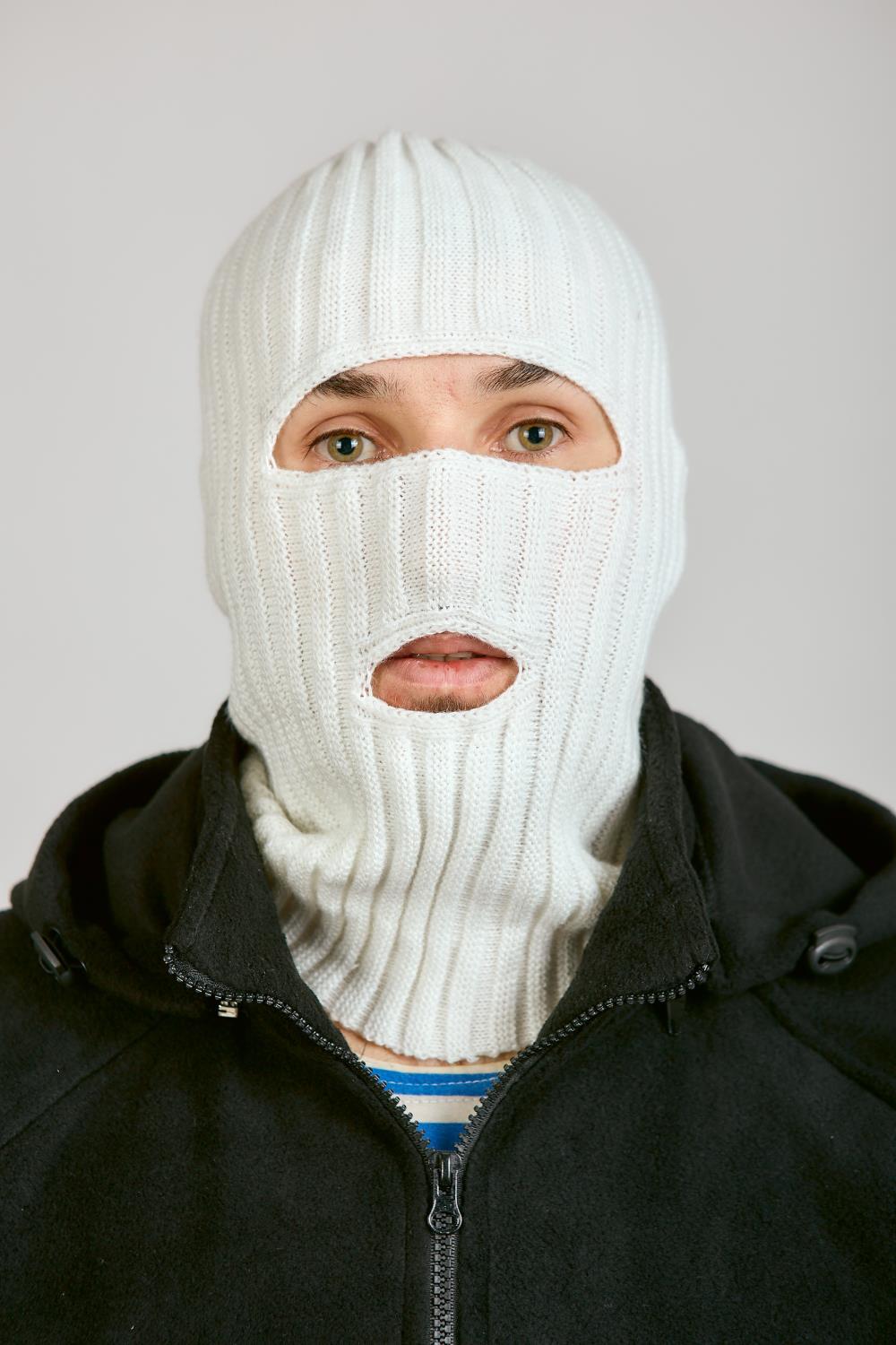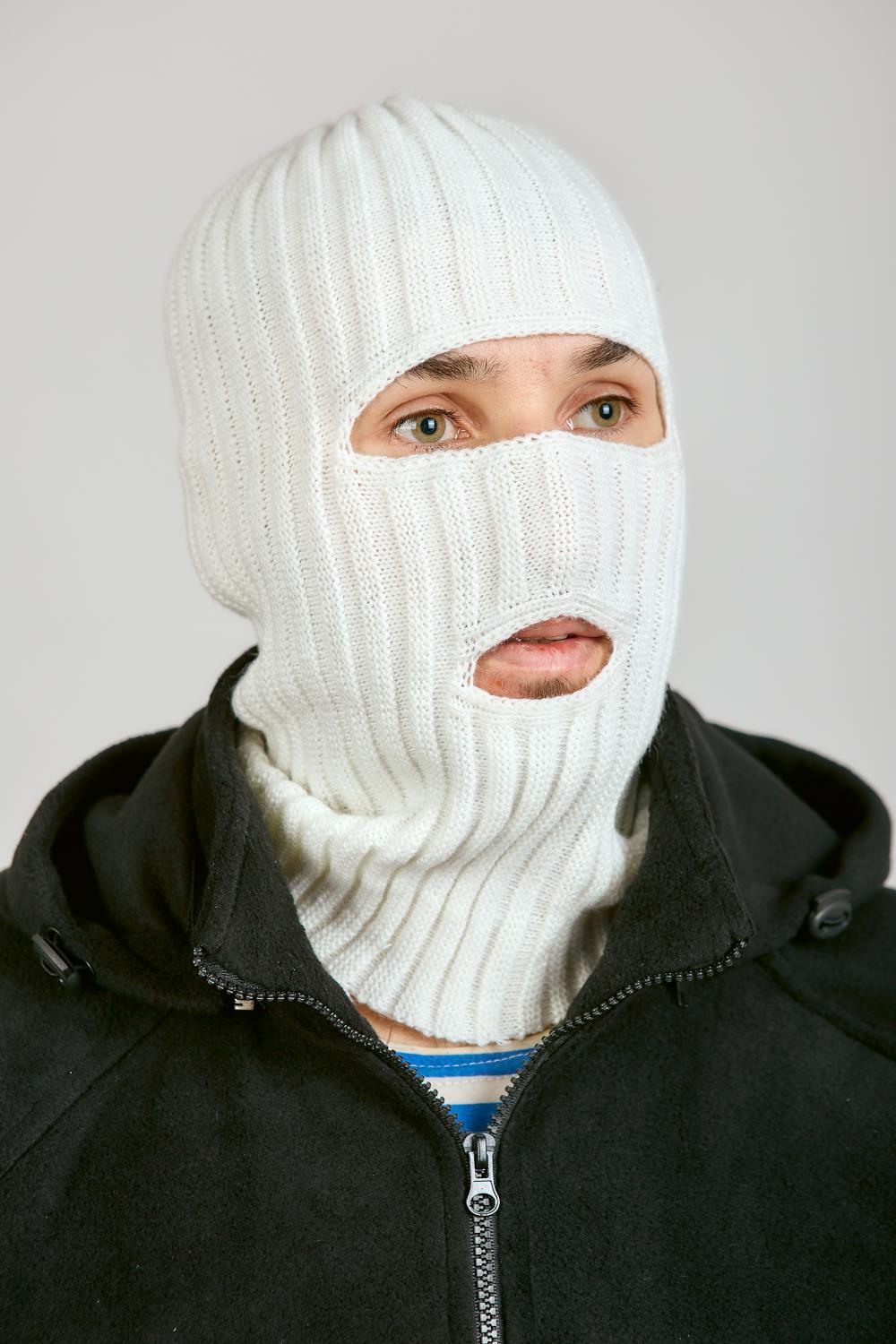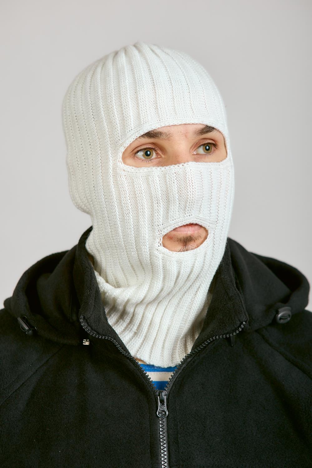 Маска 2 ОТВЕРСТИЯ, белый, пан, шерсть - интернет магазин Полигон