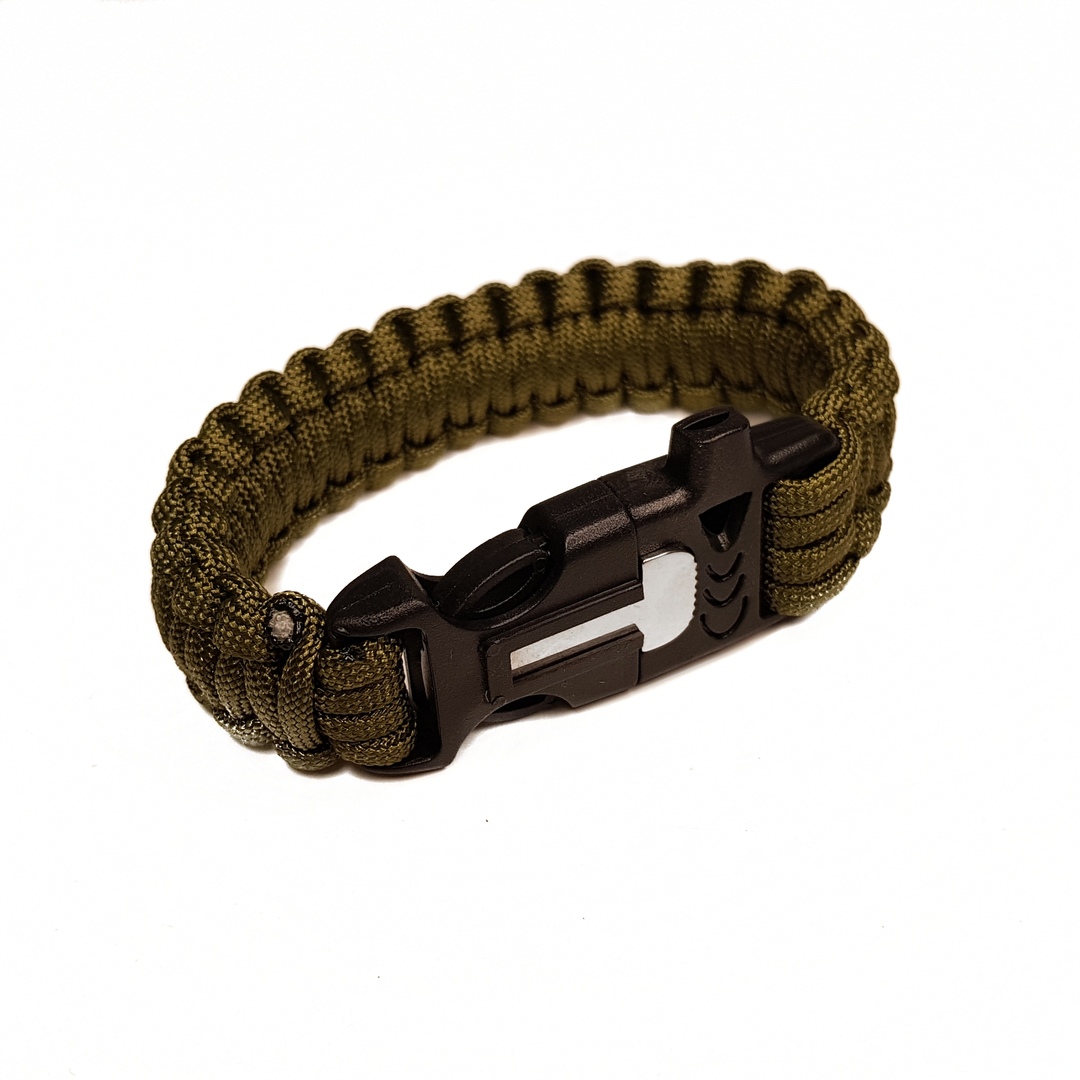 Браслет выживания из паракорда с огнивом и свистком, оливковый - интернет магазин Полигон